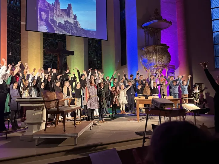 | Proben: Dienstagnachmittag Gemeindehaus der Stadtkirchengemeinder Durlach Leitung: Johanna Wiebusch und Johannes Blomenkamp Seit 2011 gibt es in der Durlacher Singschule ab dem Grundschulalter die Trennung in Mädchen- und Knabenchöre. Dadurch kann gezielter auf die unterschiedlichen Bedürfnisse eingegangen werden. Ab der siebten Klasse kommen Mädchen und Jungen dann in der Jugendkantorei wieder zusammen. Johanna Wiebusch leitet den Spatzenchor und die Mädchenchöre, die Knabenchöre und die Jugendkantorei stehen unter der Leitung von Johannes Blomenkamp. Neben Auftritten in den Gottesdiensten der Stadtkirche Durlach sind die jährlichen Musical-Aufführungen und das Weihnachtssingen bei Kerzenschein am vierten Advent die Höhepunkte im Chorjahr. Immer wieder wirken Kinder und Jugendliche der Durlacher Singschule auch bei Konzerten der Durlacher Kantorei mit, z. B. in Bachs Matthäus Passion oder der Carmina Burana. Die Proben finden Dienstagnachmittags im Gemeindehaus am Zwinger statt: 15:45 - 16:15 Uhr: Spatzenchor (Aufgrund der hohen Nachfrage erst ab 5 Jahren) 16:30 - 17:15 Uhr: Mädchenchor Durlach 1 (1.- 3. Klasse) 17:30 - 18:15 Uhr: Mädchenchor Durlach 2 (4.- 6. Klasse) 16:30 - 17:15 Uhr: Knabenchor Durlach 1 (1.- 3. Klasse) 17:30 - 18:15 Uhr: Knabenchor Durlach 2 (4.- 6. Klasse) 18:30 - 19:45 Uhr: Jugendkantorei | Probenort |